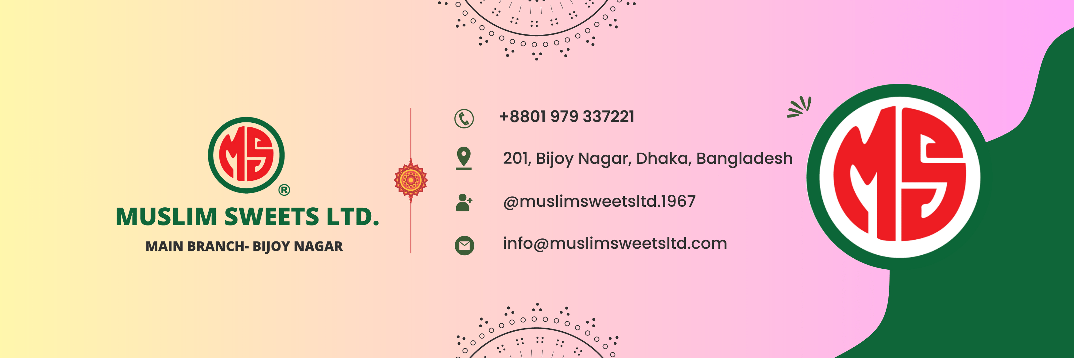 আস্সালামু আলাইকুম । “মুসলিম সুইটস লিমিটেডের” এর পক্ষ থেকে আপনাকে জানাই আন্তরিক শুভেচ্ছা ও অভিনন্দন । বাংলাদেশের মিষ্টির জগতে “মুসলিম সুইটস” একটি স্বনামধন্য উন্নতমানের খাদ্যসামগ্রী উৎপাদন ও বাজারজাতকারী প্রতিষ্ঠান । দেশের গুরুত্বপূর্ণ সরকারী ও বেসরকারী বিভিন্ন অনুষ্ঠানে আমরা দীর্ঘদিন যাবৎ অত্যন্ত সুনাম ও দক্ষতার সাথে খাদ্যপণ্য সরবরাহ করে আসছি । আমরাই এদেশে প্রথম “হালাল” সনদ প্রাপ্ত মিষ্টি ও মিষ্টিজাত খাদ্যপণ্য উৎপাদন ও বাজারজাতকারী প্রতিষ্ঠান হিসেবে পণ্য তৈরীতে কোন প্রকার কৃত্রিম রং, স্বাদ, সংরক্ষনকারী রাসয়নিক ব্যবহার করি না । পণ্য উৎপাদনে বিএসটিআই এর নির্ধারিত মান কঠোরভাবে অনুসরন ও বিসিএসআইআর (বাংলাদেশ বিজ্ঞান ও শিল্প গবেষণা পরিষদ) এর নির্দেশনা মেনে অত্যন্ত নিষ্ঠা ও যত্ন সহকারে যথাযথ মোড়কীকরন ও পণ্য বাজারজাত করে থাকি ।